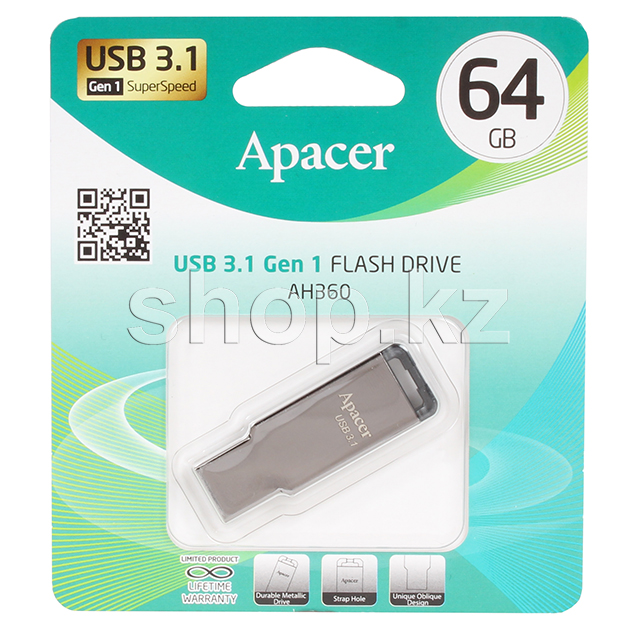 USB 64Gb Apacer AH360, USB 3.1, Silver флешкасы