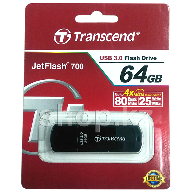 USB Флешка 64Gb Transcend JetFlash 700, USB 3.0, Black