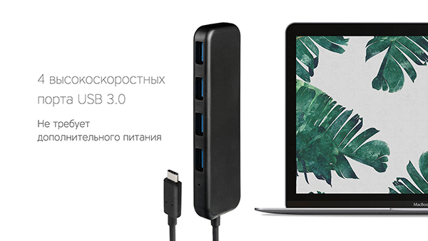USB HUB 4-port USB 3.0 Rombica TC-00020, Black