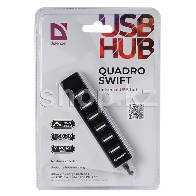 USB HUB 7-port USB 2.0 Defender Quadro Swift, Black