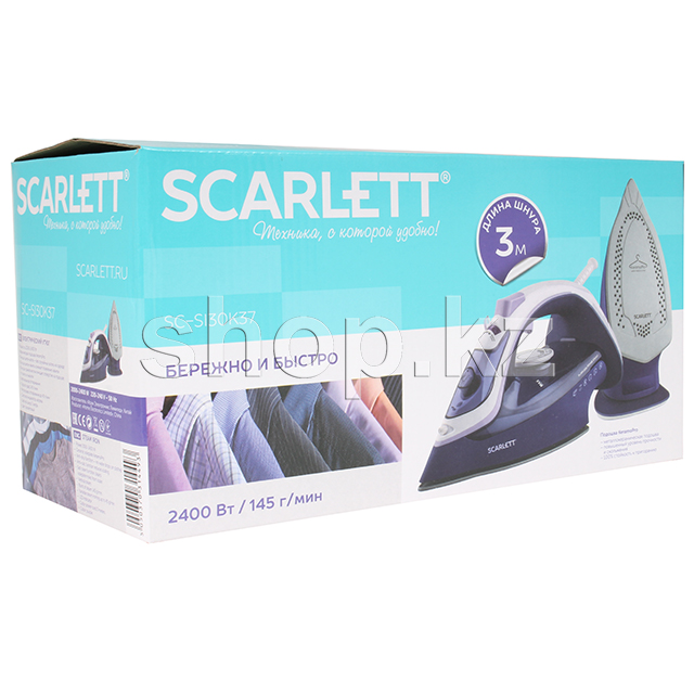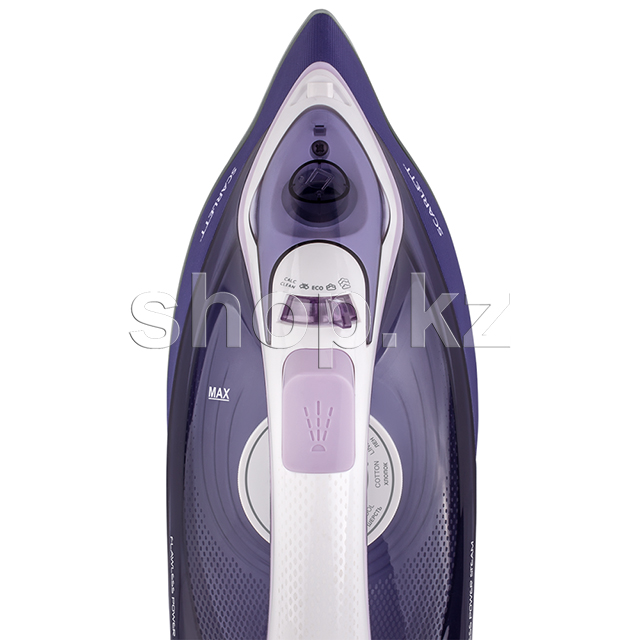Утюг SC-SI30K37 фиолетового цвета оснащен керамической подошвой KeramoPro, мощностью 2400 Вт, что позволяет выдавать постоянный пар до 45 г/мин, а в режиме парового удара выдает 145 г/мин. Данные характеристики оптимальны: вы сможете произвести идеальную глажку не потратив избыточной энергии.