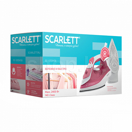 Scarlett SC-SI30K56 с пластиковым корпусом розового цвета снабжен идеально гладкой подошвой с керамическим покрытием KeramoPro, которая обеспечивает отличное скольжение и бережное отношение ко всем видам тканей.