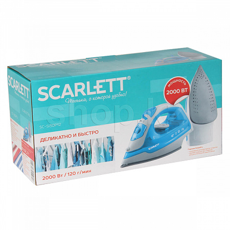 Утюг Scarlett SC-SI30P12 с пластиковым корпусом бело-голубого цвета снабжен идеально гладкой подошвой с полимерным антипригарным покрытием SimplePro.
