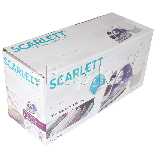 Утюг SCARLETT SC-SI30S06 в стильном лиловом цветовом решении отпаривает различные материалы не только в горизонтальном, но и в вертикальном положении! Этому способствует постоянный пар в 40 г/мин и паровой удар в 120 г/мин.