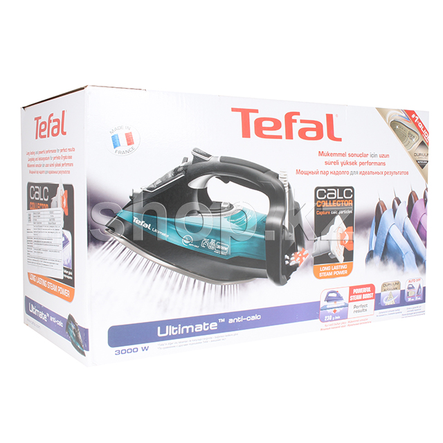 Ultimate Anti-Calc - это мощная энергия, к которой можно прикоснуться, благодаря эксклюзивному коллектору для сбора накипи, обеспечивает долговечность, удовлетворяя даже самые взыскательные требования к глажке и обеспечивая всегда отличные результаты. Непрерывная подача пара в 55 г/мин обеспечивает быстрые и эффективные результаты, а паровой удар 220 г/мин устраняет даже самые жесткие складки, 3000 Вт мощности обеспечивают быстрый нагрев.