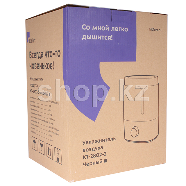 Также в комплекте к увлажнителю идет ванночка с фильтром для ароматического масла, чтобы наполнить воздух в комнате приятным ароматом. КТ-2802 прост в эксплуатации и обслуживании, отличается высокой надежностью в работе. Может использоваться в помещениях и квартирах, площадь которых не превышает 15–20 м².