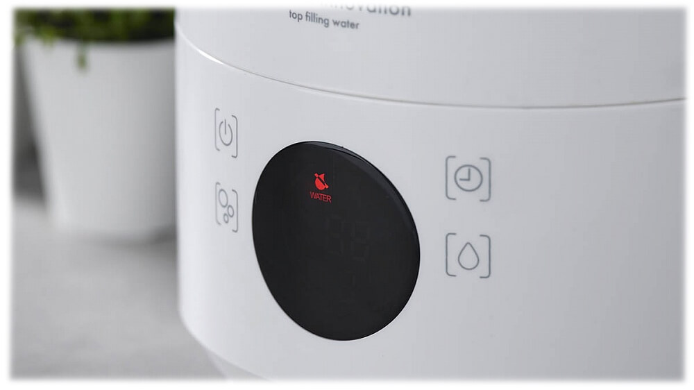 Встроенный гигростат дает возможность регулировать влажность воздуха в помещении и отображает на дисплее текущий уровень влажности, что помогает создать оптимальный микроклимат. При отсутствии воды в увлажнителе, прибор автоматически отключается для сохранения длительного срока службы.