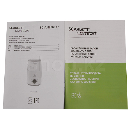 Увлажнитель воздуха SC-AH986E17 оснащен функцией верхнего долива воды для максимально комфортного использования прибора. Нет необходимости выемки резервуара, что позволяет избежать разбрызгивания воды. Резервуар вмещает в себя 3.5 литра воды, чего достаточно для увлажнения помещения площадью до 30 квадратных метров.