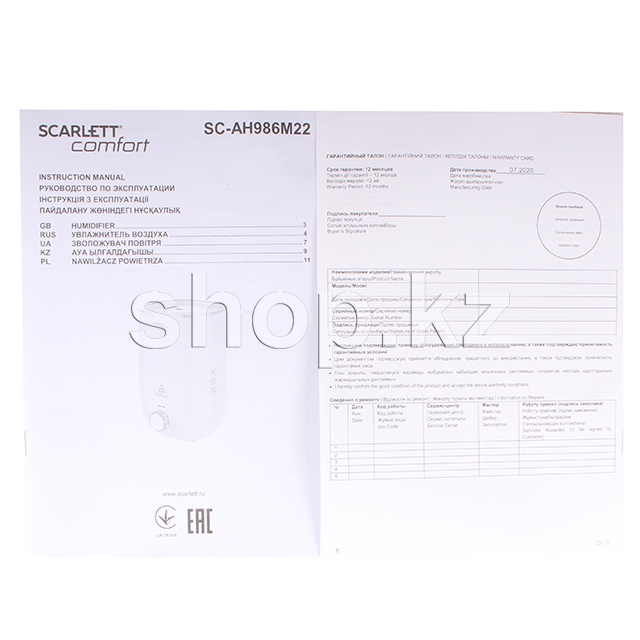 Увлажнитель воздуха SC-AH986M22 оснащен функцией верхнего долива воды для максимально комфортного использования прибора. Нет необходимости вытаскивать контейнер, избегая разбрызгивания воды. Для создания приятной и ароматной атмосферы, достаточно лишь добавить несколько капель аромамасла в капсулу.