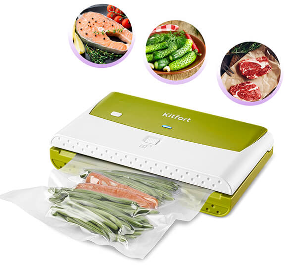 Вакууматор Kitfort КТ-1512 увеличивает сроки хранения пищевых продуктов. Продукты, упакованные под вакуумом, сохраняют свежесть и не портятся существенно дольше по сравнению с обычными условиями хранения. Вакуумирование ускоряет засолку и маринование.