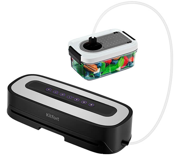 Вакууматор Kitfort КТ-1520 призван обеспечивать долгие сроки хранения ваших любимых продуктов. Продукты, упакованные под вакуумом, сохраняют свежесть и не портятся существенно дольше по сравнению с обычными условиями хранения.
