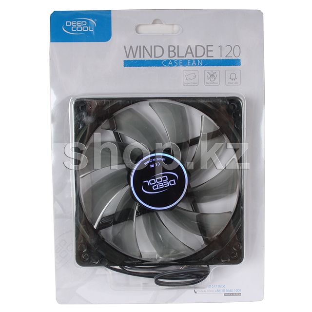 Вентилятор DEEPCOOL Wind Blade 120 – высокопроизводительная модель. Устройство оснащено подсветкой. Рамка вентилятора изготовлена из полупрозрачного темного пластика, что придает ему эффектный внешний вид.