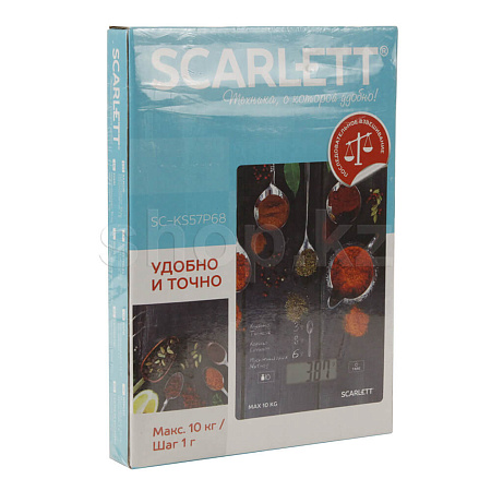 Кухонные весы Scarlett SC-KS57P68 определяют вес продуктов до 10 кг. Устройство также может определить объём воды или молока. Стеклянная платформа легко очищается и не впитывает запахи. Увеличенное время работы в режиме ожидания до 3 минут позволит производить измерения, не отвлекаясь на повторное включение прибора.