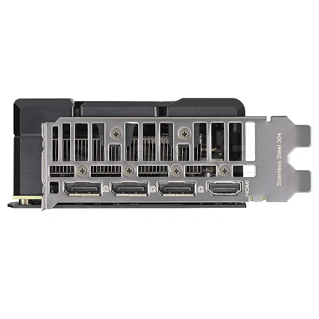 Печатная плата усилена алюминиевой задней пластиной, которая повышает структурную жесткость, помогая предотвратить изгиб и защитить компоненты и дорожки от повреждений. На задней панели имеется широкое вентиляционное отверстие, которое позволяет горячему воздуху выходить к вытяжным вентиляторам корпуса, а не перерабатываться обратно в кулер графического процессора.