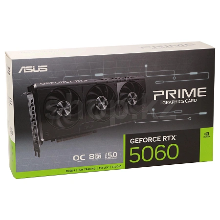 Prime RTX 5060 имеет конструкцию с 2,5 слотами и тщательно продуманной компоновкой кожуха, радиатора и тепловых трубок, что позволяет трем вентиляторам Axial-tech эффективно использовать вентиляцию боковой панели корпуса и обеспечивать оптимальные тепловые характеристики.