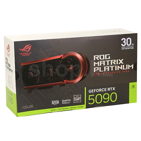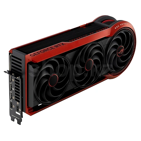 Видеокарта ROG Matrix GeForce RTX 5090, отмечающая три десятилетия инноваций ASUS, обеспечивает непревзойденную производительность в играх и теплоотводе. В сочетании с усовершенствованной материнской платой BTF и блоком питания 12V-2x6, ROG Matrix GeForce RTX 5090 может потреблять до 800 Вт и обеспечивать на 10% более высокую производительность. Карта имеет четырехвентиляторную конструкцию, медную испарительную камеру, жидкометаллическую термопасту, 3-унцовую медную печатную плату для эффективного охлаждения графического процессора и более высокие тактовые частоты в режиме Boost, а также функцию Memory Defroster для экстремального разгона с использованием жидкого азота.