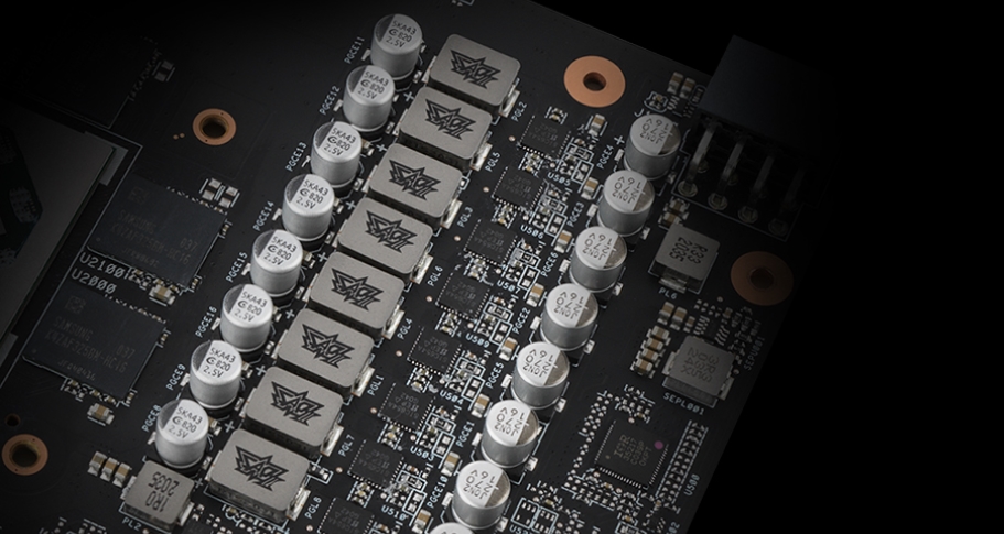 Двойные вентиляторы Axial-tech эффективно прогоняют воздух через большой радиатор, охлаждая графический процессор, а высококлассные конденсаторы, дроссели и полевые МОП-транзисторы обеспечивают идеальное количество чистой энергии.