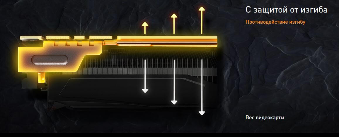 Специальная усилительная пластина укрепляет видеокарту, защищая ее от повреждений в результате изгиба.