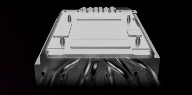 Тепловые трубки сделаны таким образом, чтобы максимально увеличить площадь контакта с графическим процессором и равномерно распределить тепло по всей длине радиатора.