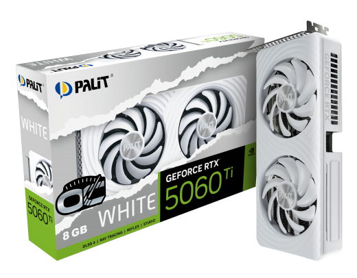 Palit GeForce RTX 5060 Ti White обеспечивает классическую эффективность охлаждения в чистом и современном белом дизайне. Два вентилятора по 95 мм обеспечивают мощное и тихое охлаждение в компактном двухслотовом формате — идеально для сборок малого формата. Прочная белая задняя панель добавляет конструкции жесткости и эстетики.