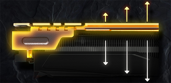 Специальная усилительная пластина укрепляет видеокарту, защищая ее от повреждений в результате изгиба.