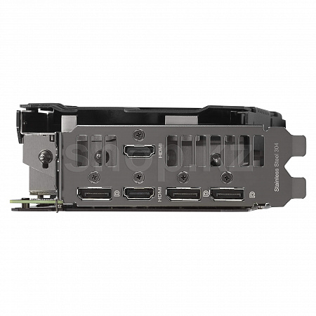 Работу встроенного элемента подсветки можно настроить и синхронизировать с подсветкой других компонентов ASUS. Питание видеокарты обеспечивается посредством 8-контактного разъема со встроенной системой мониторинга: при неправильном подключении кабелей питания, загорится предупреждающий индикатор.