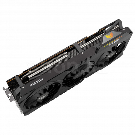 RX 6900 XT TUF Gaming - это стойкий зверь с прочным корпусом, сверхэффективным охлаждением и компонентами, которые обеспечивают повышенную надежность. В кожухе размещены три мощных осевых вентилятора с двойными шариковыми подшипниками и дополнительными лопастями. Под экзоскелетом толстый радиатор удерживает тепловые потоки под жестким контролем, а компоненты TUF, выбранные для максимальной прочности и производительности, позволяют этой карте опережать остальных.