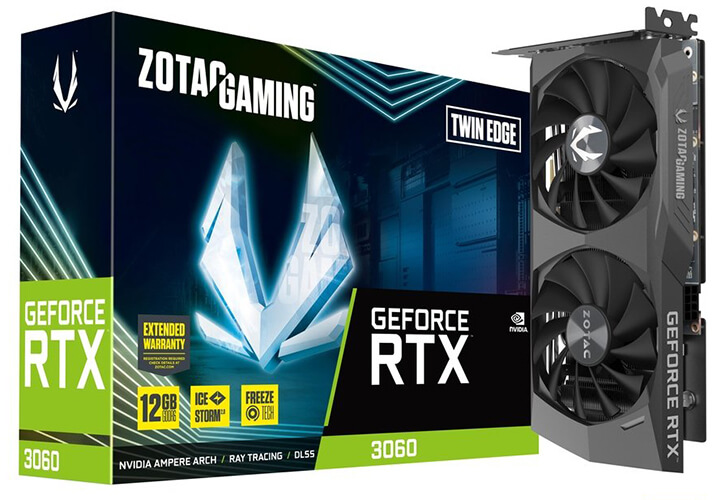 Видеокарта PCI-E 12Gb ZOTAC RTX 3060 Twin Edge, GeForce RTX3060