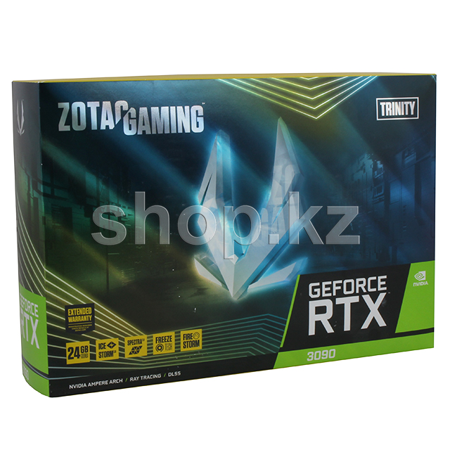 Видеокарта ZOTAC RTX 3090 Trinity демонстрирует колоссальную мощь во всех отношениях, обеспечивая высокий уровень производительности. В ее основе лежит Ampere — архитектура NVIDIA RTX второго поколения — с удвоенной производительностью трассировки лучей и технологий искусственного интеллекта благодаря улучшенным ядрам для трассировки лучей (RT), тензорным ядрам и потоковым мультипроцессорам. Видеокарта также оснащена впечатляющим объемом видеопамяти 24 Гб, призванным обеспечить исключительный уровень игры.