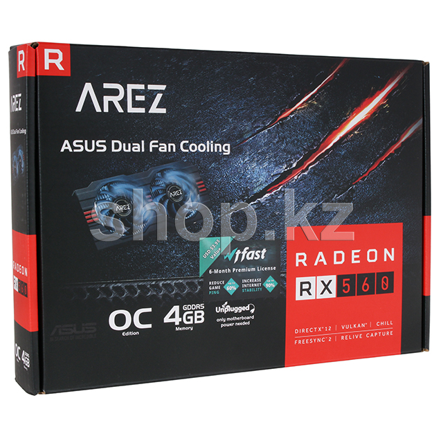 AREZ RX560-бұл екі шаң өткізбейтін желдеткішті қамтитын тиімді салқындатқышы бар ойын графикалық картасы. Оны жасау кезінде жоғары сапалы компоненттер қолданылады және xsplit gamecaster онлайн трансляция модулі бар GPU Tweak II эксклюзивті үдеткіш утилитасы жеткізілімге кіреді.