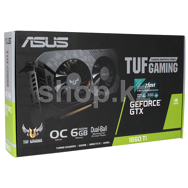 Мінсіз сенімділік, кең үйлесімділік және жоғары өнімділік – ASUS TUF gaming GeForce GTX 1660 ti графикалық картасы мұның бәрін TUF сериялы құрылғылардың экожүйесінде қол жетімді етеді. Құрылғы ұзақ уақытқа созылатын Қос шарикті мойынтіректері және ip5x шаң өткізбейтін сертификаты бар тиімді екі желдеткіш салқындатқышпен жабдықталған. сондай-ақ, TUF Gaming Alliance бағдарламасы аясында толық автоматтандырылған өндіріс процесін (Auto-Extreme технологиясы) және үйлесімділікті тексеруді атап өтуге болады.
