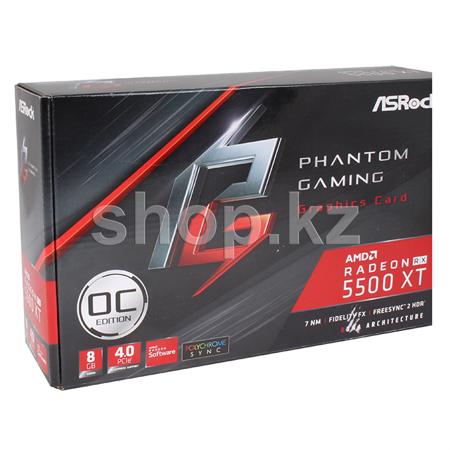 Видеокарта PCI-E 8192Mb ASRock RX 5500 XT Phantom Gaming D OC, Radeon RX 5500 XT