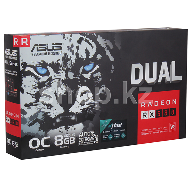 Идеальное соотношение цена/производительность ASUS RX 580 Dual – это геймерская карта с эффективным охлаждением, обладающая двумя пыленепроницаемыми вентиляторами с оптимизированной формой крыльчатки. При ее изготовлении применяются высококачественные компоненты, а в комплект ее поставки включена эксклюзивная разгонная утилита GPU Tweak II с модулем онлайн-трансляций XSplit Gamecaster.