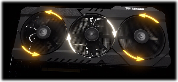 Особо надежная видеокарта Видеокарта TUF Gaming GeForce RTX 3070 Ti полна инновационных решений, направленных на улучшение электропитания и охлаждения. Под металлическим кожухом новой конструкции работают три мощных вентилятора Axial-tech с долговечными двойными шарикоподшипниками. При низкой температуре они останавливаются, делая видеокарту бесшумной.