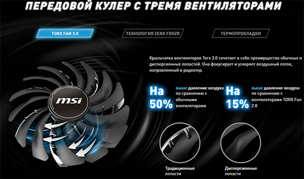 Технология Zero Frozr: под низкими нагрузками вентиляторы останавливаются, делая видеокарту бесшумной