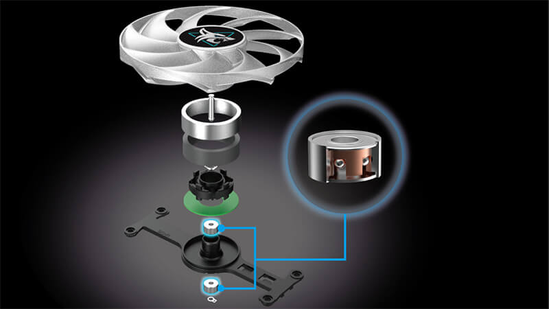 Двойные шарикоподшипники уменьшают трение при вращении, обеспечивая превосходное рассеивание тепла и фактически удваивая ожидаемый срок службы вентиляторов.