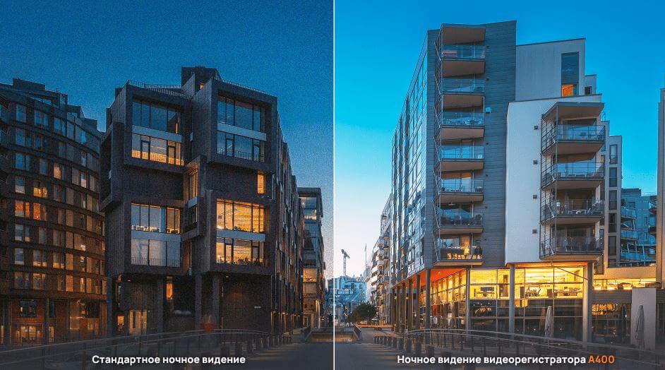 Благодаря технологии WDR A400 автоматически регулирует баланс экспозиции при записи в условиях низкой освещенности или высокой контрастности. Большая диафрагма F2.0 повышает освещенность изображения, делая темные сцены отчетливыми.
