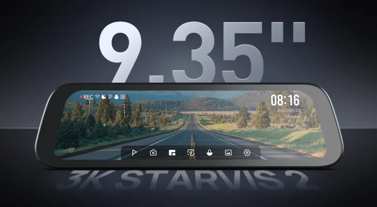 Насладитесь 9,35-дюймовым сенсорным экраном с полным ламинированием, устраняющим слепые зоны и обеспечивающим широкий обзор. Оцените исключительное качество изображения с разрешением 3K , обеспечиваемым 5-мегапиксельным сенсором Sony STARVIS 2 IMX675. Голосовое управление