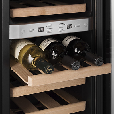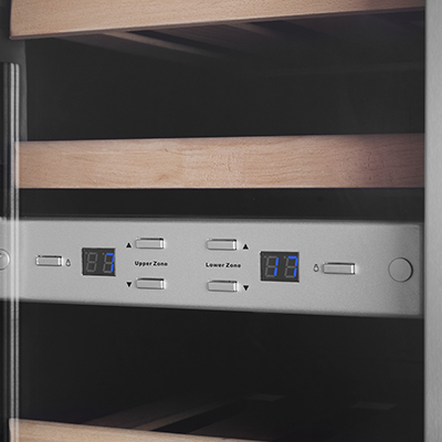 Важной особенностью винного шкафа Kitfort КТ-2406 является наличие двух климатических зон, в которых можно хранить разные сорта вина при разной температуре.