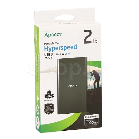 AS723 использует интерфейс USB 3.2 Gen2 x2 NVMe со скоростью передачи данных до 2000/2000 МБ/с, что позволяет загружать 10 минутное видео 8К всего за 3 секунды. Это делает его идеальным для передачи высококачественных и высокопроизводительных видеофайлов 8К. Пройдены испытания на падение с высоты 1.2 м военного образца