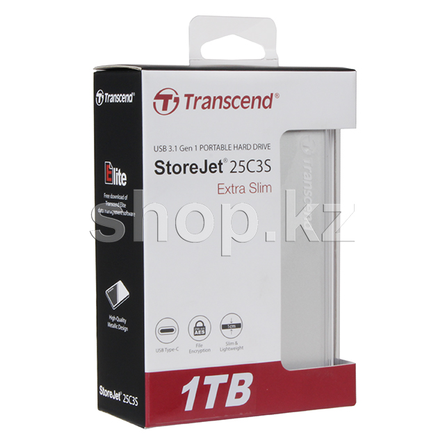 1000Gb 2.5", Transcend StoreJet 25C3S, Silver (TS1TSJ25C3S) сыртқы қатты дискi