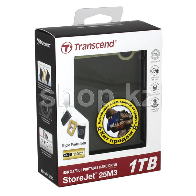 1000Gb 2.5", Transcend StoreJet 25M3, Military green сыртқы қатты дискi