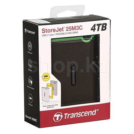 4 TB 2.5", Transcend StoreJet 25M3C, Gray-Green сыртқы қатты дискi