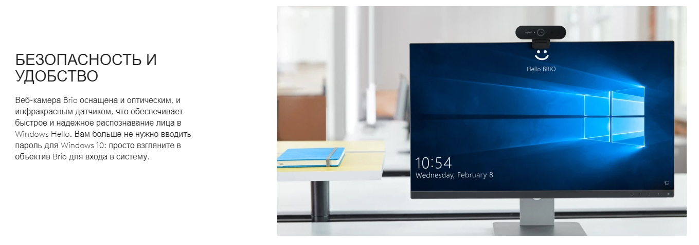Brio является сертифицированной моделью бизнес-класса и оснащена интегрированными оптическим и инфракрасным датчиками, а также поддерживает функцию распознавания лиц Windows Hello.