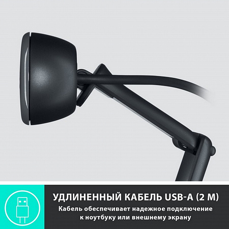Благодаря удлиненному кабелю USB-A длиной 2 м и универсальному креплению веб-камеру C505 можно зафиксировать различными способами. Воспользуйтесь стандартным вариантом установки веб-камеры на ноутбуке или внешнем экране либо решите задачу творчески и разместите устройство на полке или в любом другом месте на расстоянии до 2 м от компьютера.