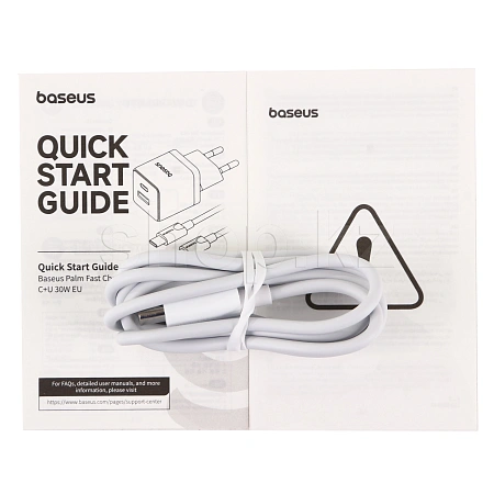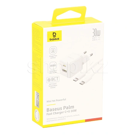 Зарядное устройство Baseus Palm C+U 30W, сеть, для USB устройств, Moon White + кабель USB Type-C