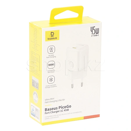 Зарядное устройство Baseus PicoGo 1C 45W, сеть, для USB Type-C устройств, Moon White