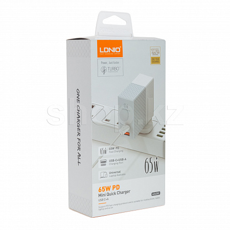 Сетевое зарядное устройство LDNIO A2620C - это стильная и качественная зарядка для мобильных устройств, планшетов и ноутбуков. Устройство оснащено одним выходом USB TYPE-C и одним USB TYPE-A. При этом выходная мощность USB TYPE-C составляет 65 Вт.