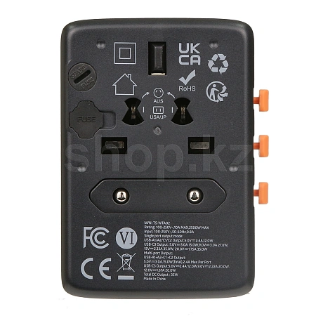 Сетевой фильтр (тревел-адаптер) с несколькими вариантами розеток 100-250В, 2 USB и 3 USB-C портами. Эргономичный дизайн. Огнеупорный материал корпуса. Надежные плотные разъёмы.