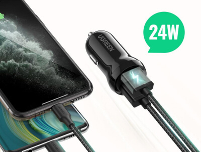 - Автомобильное зарядное устройство для телефона UGREEN - маленькая, но мощная зарядка, позволяющая одновременно заряжать в автомобиле два устройства.